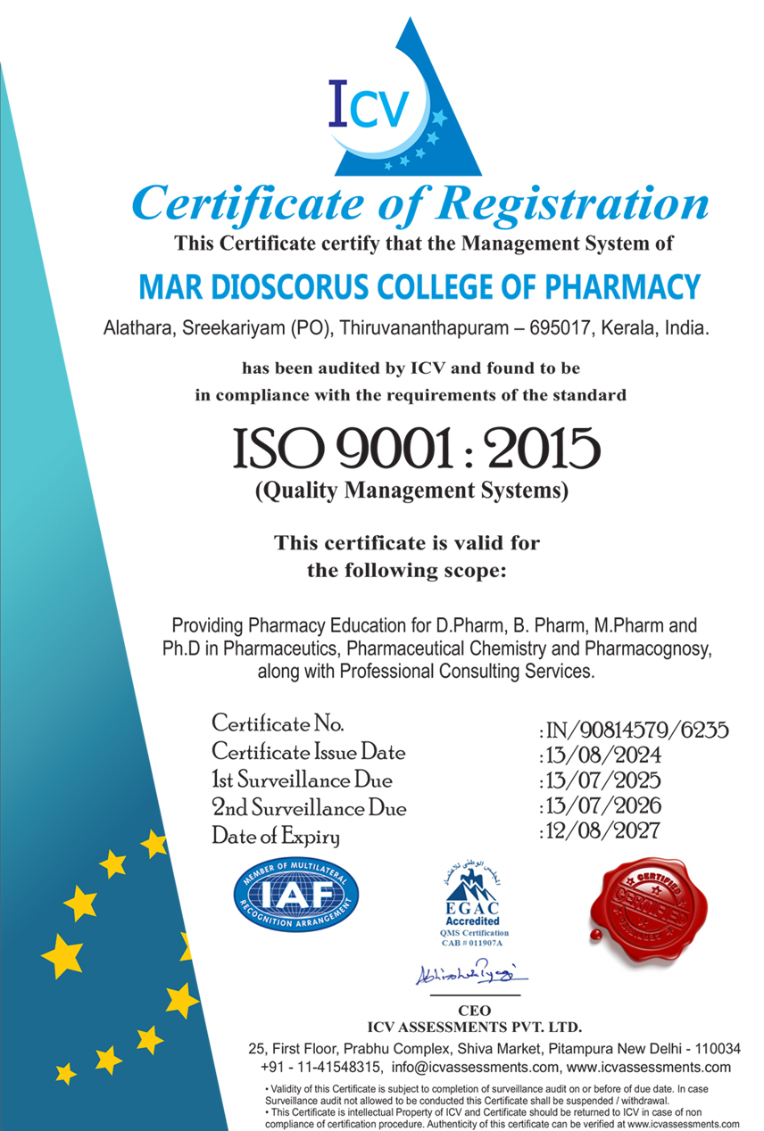 MAR DIOSCORUS COLLEGE OF PHARMACY