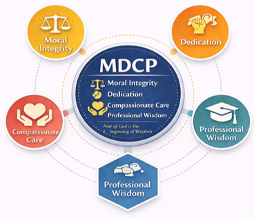 The curriculum is structured around the KUSA framework—Knowledge, Understanding, Skills, and Attitude—to ensure holistic development of students in alignment with the guiding value of Moral Integrity, Dedication, Compassionate Care, and Professional Wisdom.