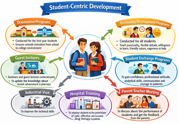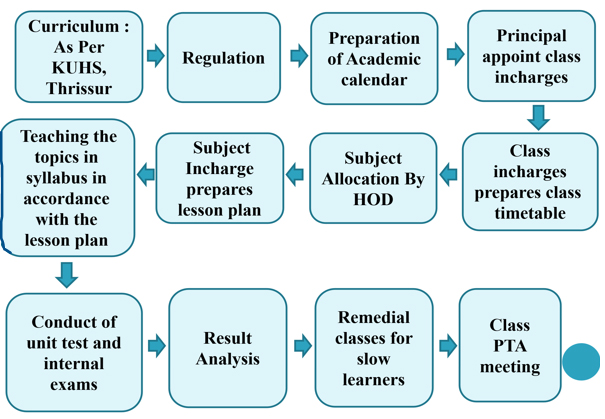 Being affiliated college to Kerala University of Health Sciences, the college follows the curriculum and syllabus prescribed by the University and Pharmacy Council of India. The Curriculum Planning and Delivery at the college adopts the following.